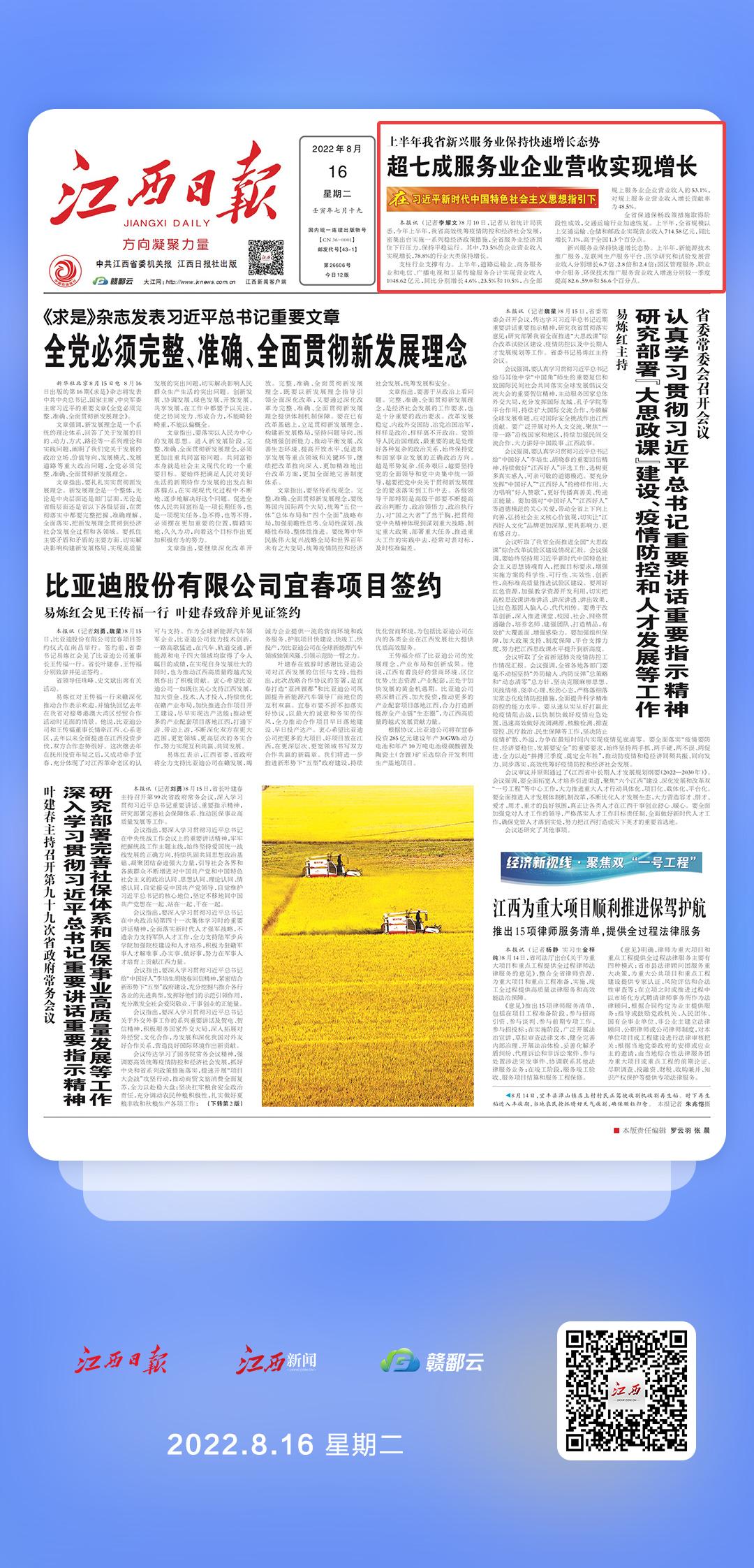 江西日报头版报道:上半年我省新兴服务业保持快速增长态势