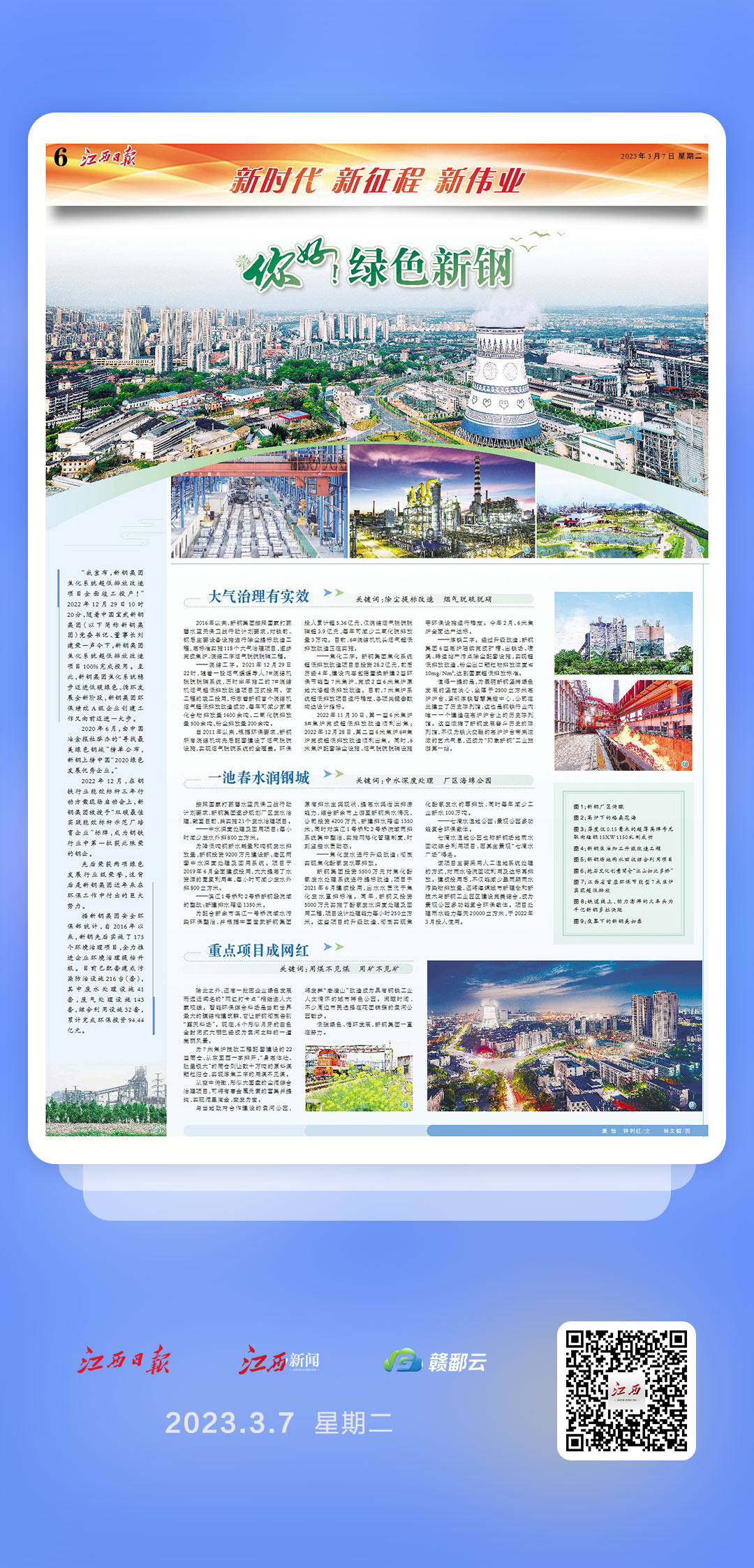 江西日报“新时代 新征程 新伟业”专栏整版报道:你好!绿色新钢