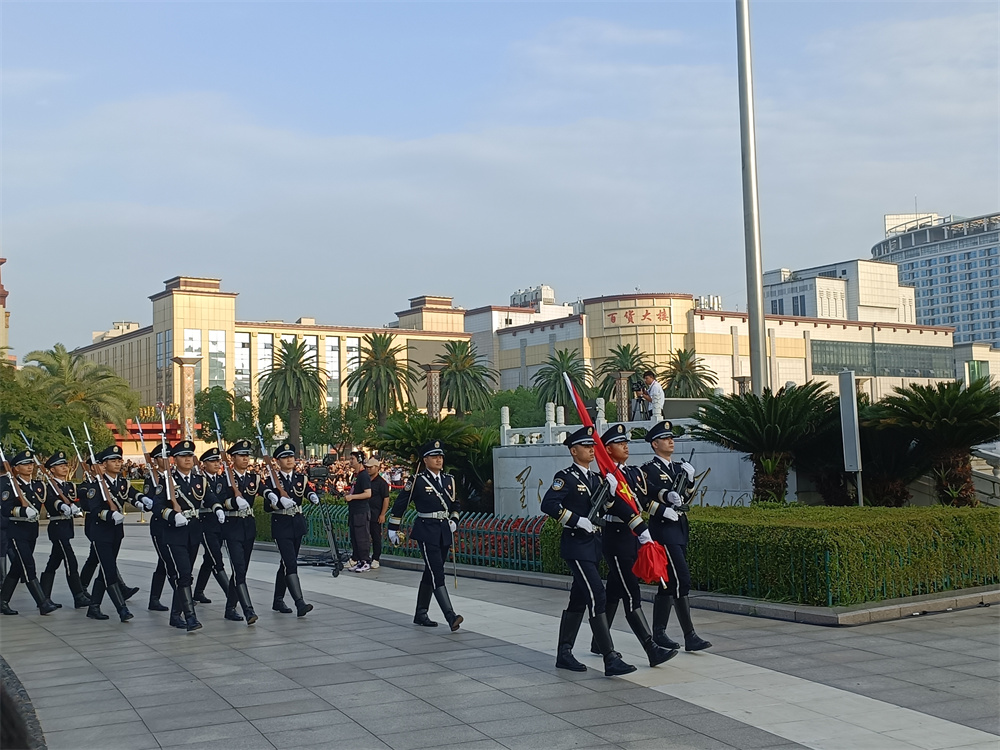 6月1日是国际儿童节,当日,南昌市在八一广场举行“弘扬爱国志奋进新征程”六一专场升旗仪式。6时25分,300名少先队员在现场齐唱《歌唱祖国》,南昌市公安局警旗队护送着国旗踏歌而来。6时30分,国歌响起,在场群众注视着五星红旗冉冉升起…… (王琨 全媒体记者方维芳)