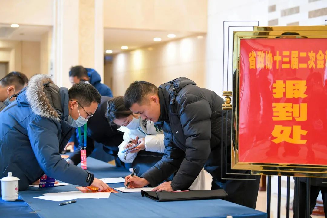 “请在这里签上您的名字”“请拿好您的委员证”……1月21日下午,参加省政协十三届二次会议的委员们陆续抵达驻地宾馆向大会报到。