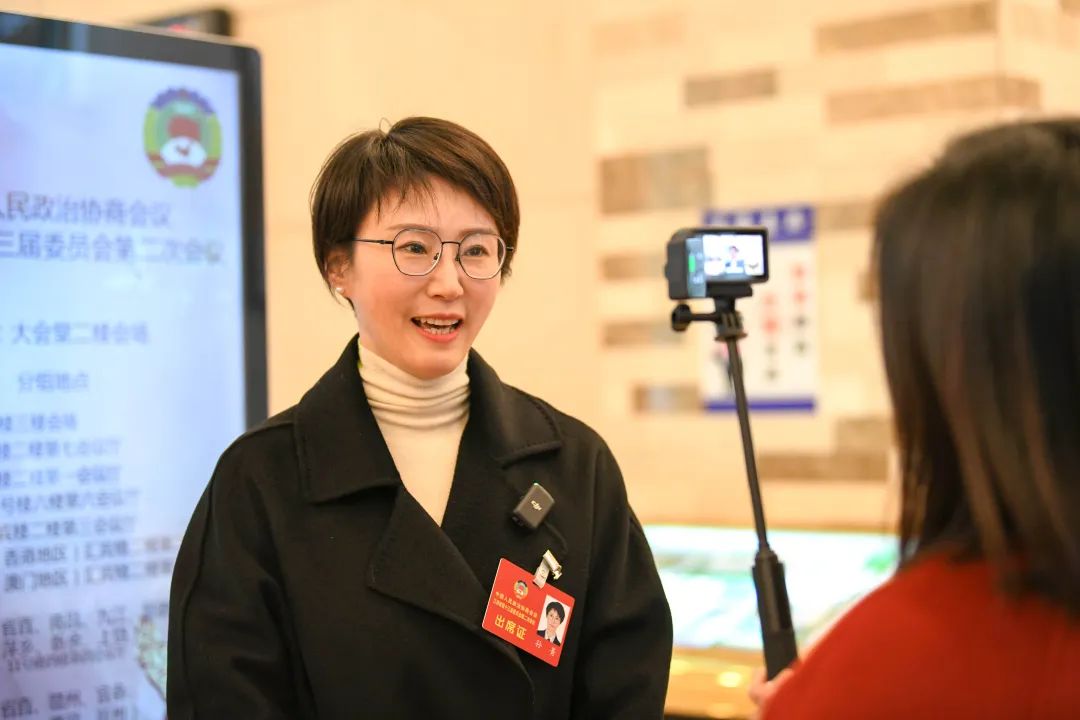 ▲1月21日下午,在省政协十三届二次会议报到现场,孙菁委员接受媒体记者采访。占佩璐摄