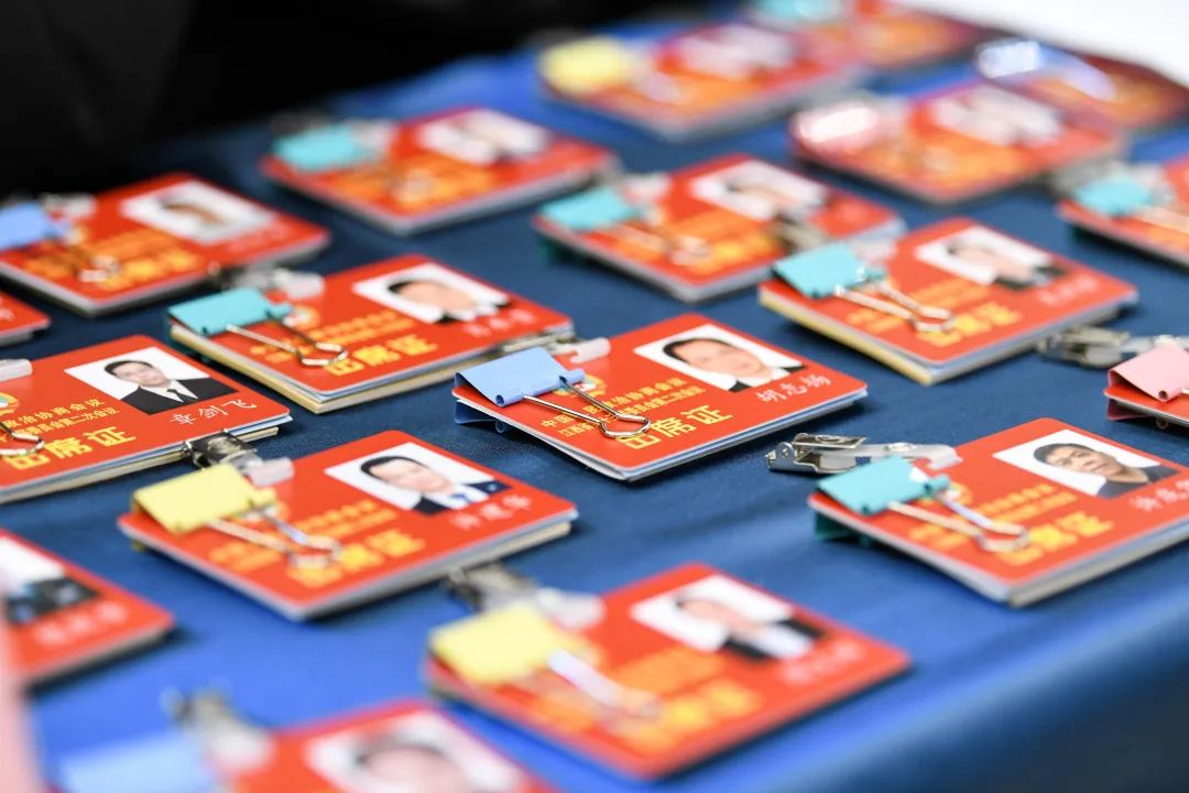 ▲1月21日下午,省政协十三届二次会议报到现场,整齐地摆放着委员出席证。占佩璐摄