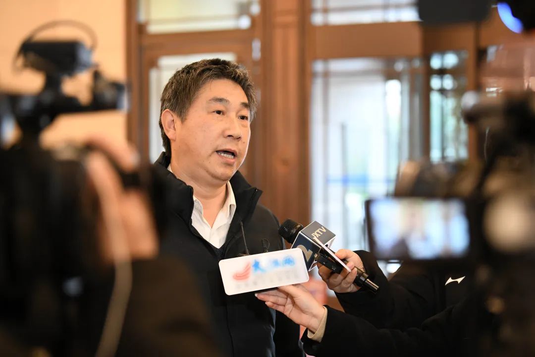 ▲1月21日下午,在省政协十三届二次会议报到现场,余鑫委员接受媒体记者采访。占佩璐摄