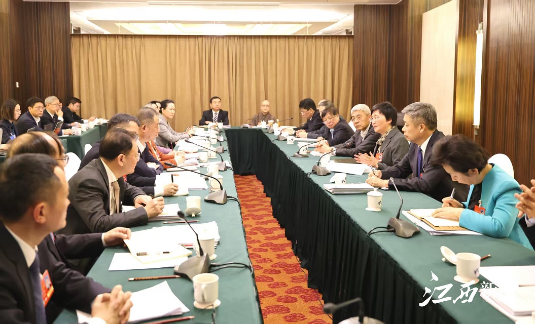 3月7日上午,十四届全国人大三次会议江西代表团在北京住地举行分组会议,审查计划报告和预算报告。省委书记、江西代表团团长尹弘,省长、江西代表团副团长叶建春等发言。人力资源和社会保障部党组书记、部长王晓萍到会听取意见。