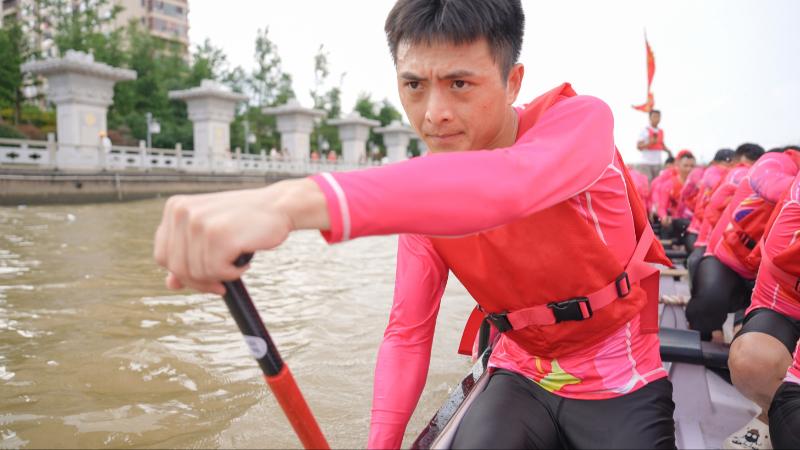 市民丁家福对记者说:“我是特地过来帮村里的龙舟队拍点视频的,也会记录一些他们训练的画面。同时在这里希望他们在比赛中能够取得更好的成绩。”
