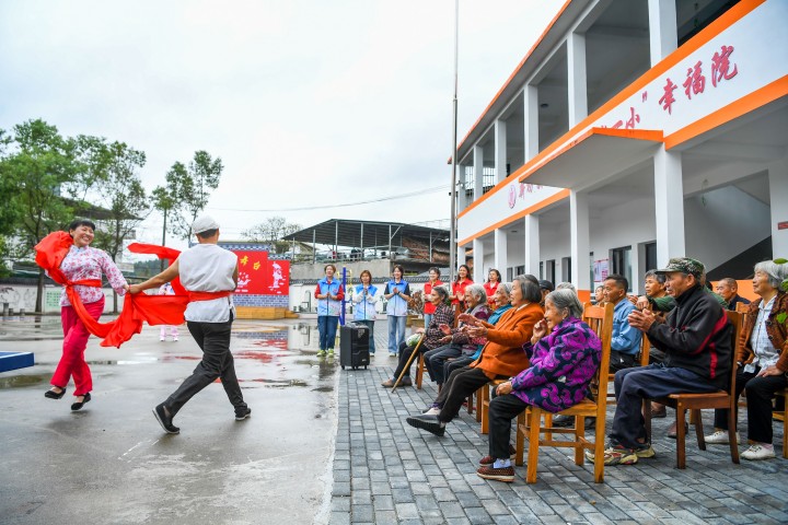 在宜春市袁州区新坊镇东墉村“幸福院”里,83岁的王奶奶经常和老姐妹们一起听戏聊天,她声音洪亮,精神饱满。