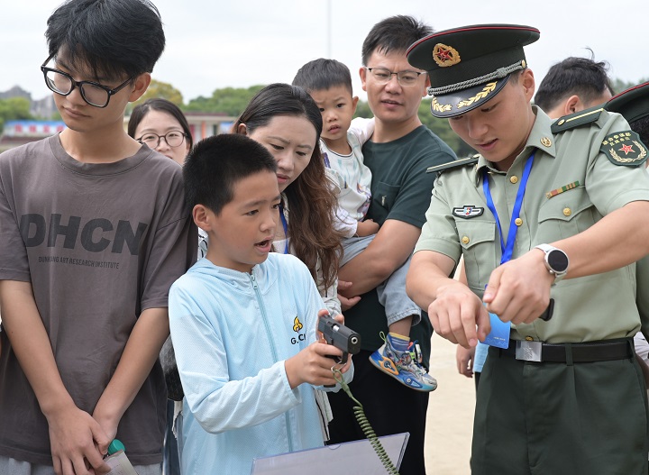 现场观众分区编组交叉参观了武器装备展示体验区、军事训练演示体验区、红色传统展示体验区、国防教育及成果展示区、军营生活展示体验区、高科技成果展示区等,近距离感受军校学员昂扬的精神风貌、军队院校浓厚的练兵氛围,在参观、互动中增强国防意识,厚植爱国情怀。