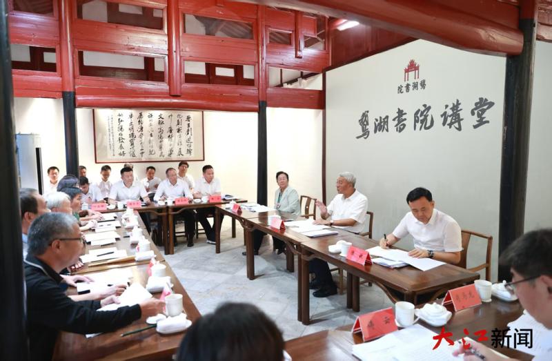 尹弘在调研中听取了省直有关单位情况汇报,与书院负责人、文化专家和文明实践工作者代表互动交流。尹弘强调,要牢牢把握马克思主义基本原理同中华优秀传统文化相结合的根本要求,更好担负起新的文化使命,深刻认识推动书院文化与文明实践融合发展的重大意义,切实把书院作为传承优秀传统文化、涵育文明风尚的重要载体,充分发挥书院以文化人、以文育人作用,更好促进人的全面发展。要适应时代发展需要,找准书院功能定位,支持重点书院差异化发展,深化课题研究阐释,不断提高书院文化的传播力、影响力。要强化支撑保障,完善工作机制,更好发挥政府引导作用,积极调动社会力量参与,扎实推动书院文化与文明实践融合发展,让书院文化焕发新的时代光彩。