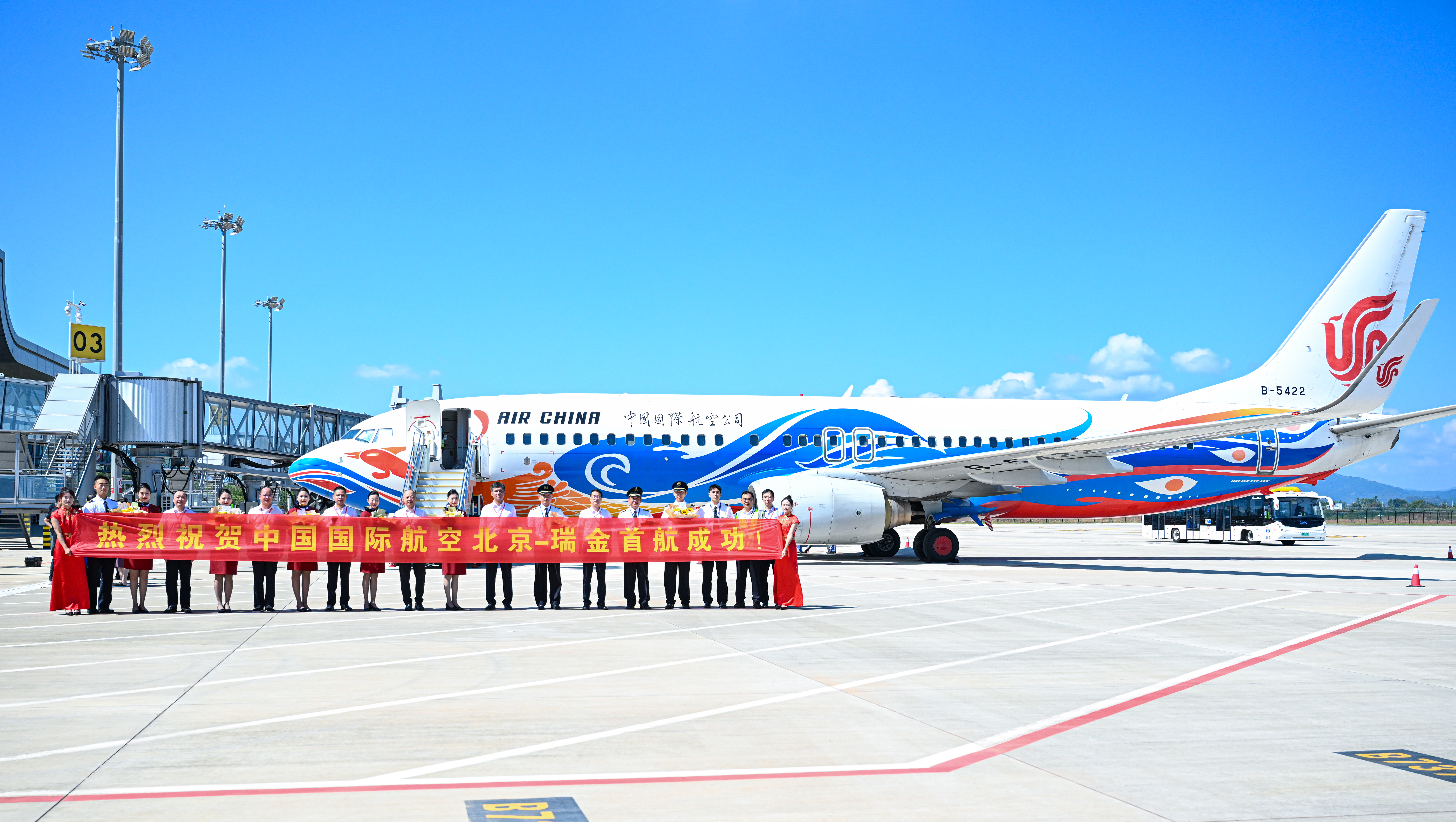 11时10分,首趟瑞金飞往北京的CA8696次航班满载着红都人民的期盼飞向蓝天。13时34分,这趟来自红都瑞金的飞机,落地北京大兴机场。