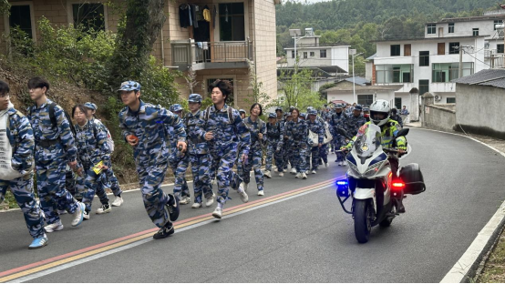 行进过程中,红旗与迷彩交辉、歌声与口号回荡,学生相互搀扶着沿宜春市靖安县靖窑、黄龙小学、中部梦幻城等路段前行,以脚步丈量意志,用汗水书写青春。在历时近6小时后,全员安全有序抵达终点。