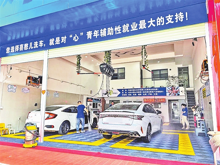 “看到他们从最初的怯懦不安到现在的自信开朗,我们深受鼓舞。”胡斌说。为了帮助更多“喜憨儿”实现就业梦想,2025年5月,他开了第二家洗车中心。