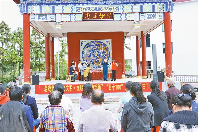 “演员在台上演,大家在台下跟着念、跟着做,这种沉浸式学习比发传单、贴海报管用。”崇义县小江社区工作人员张淑琼说。