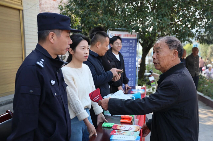 10月29日至30日,萍乡市安源区司法局青山司法所联合萍乡市公安局安源分局青山派出所、爱心律师事务所“三所联动”,在温盘村赶集场开展“情暖重阳 法治相伴”主题普法活动,向过往老年人发放老年人权益保障法、民法典等法律宣传册,教老年人识别“保健品骗局”“虚假投资”,并现场解答婚姻家庭、邻里纠纷等问题,让老年人在赶集的间隙,享受到专业的法治服务。