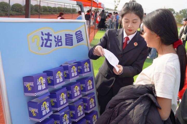 活动现场,“身体安全交通灯”“法治盲盒”等游戏吸引孩子们竞相前来打卡,学习法律知识。“护燕”普法队以游戏为媒介,为孩子们讲解法律知识,帮助他们解锁自我保护的“法律武器”,增强孩子们的自护意识与法治素养。