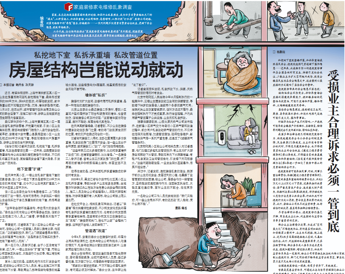 《法治日报》记者采访发现,私挖地下室、私拆承重墙、私改各类管道位置……近年来,这类擅自改动房屋结构与公共设施的违规装修行为频发,不仅扰乱邻里正常生活,更给建筑安全埋下重大隐患,引发社会广泛关注。