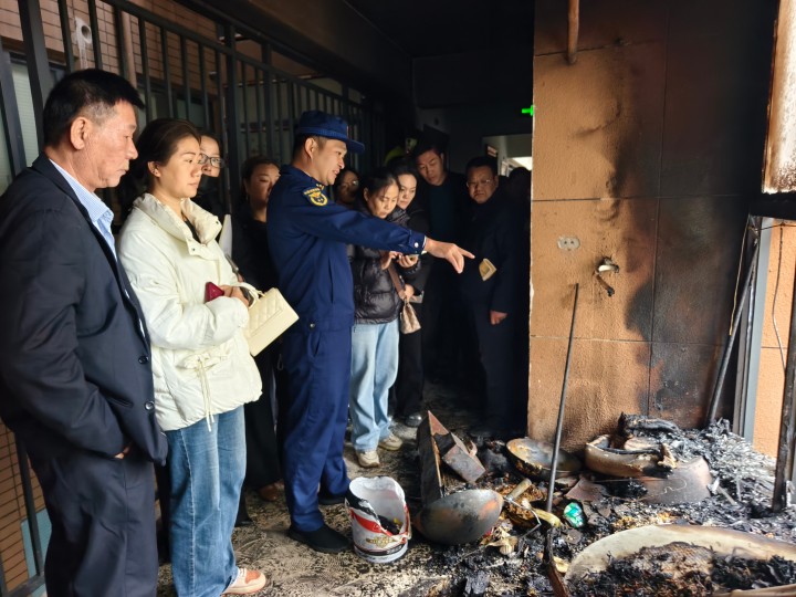 11月17日1时12分,彭泽县龙城镇和兴·中央城6栋1102房入户门外因乱堆杂物引起火灾。火灾扑灭后,彭泽县消防救援大队将全县物业负责人约到满目疮痍的火灾现场,上了一堂消防安全课。