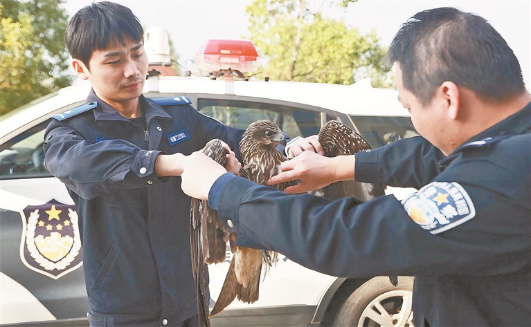 救援救助工作也在有序展开。11月13日,共青城市公安局南湖派出所接到群众求助,成功解救一只国家二级保护动物苍鹰,并将其移交给专业机构救治。