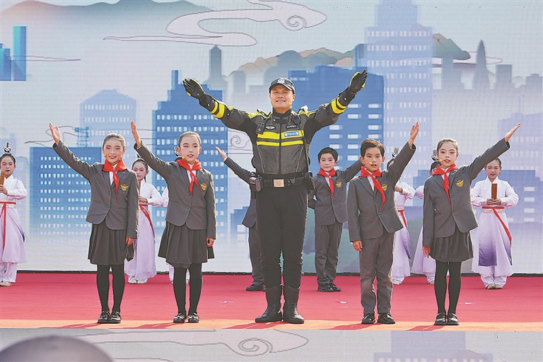 活动现场,公安交警、交通文明志愿者和学生代表联手表演了歌伴舞《新时代交警之光》《汉字话安全》《大篷车来到我们村》等节目,以“歌舞+情景演绎”的形式诠释“礼”的内涵,展示全社会携手共建共治共享良好道路交通环境的风貌,呼吁每一名交通参与者携手并肩、共同努力,结合“激活文明细胞建设城市文明”三年专项行动特别是“文明交通伴我行”行动,增强“车让人、人快行”“礼让三先”“宁停三分”等文明交通意识,自觉抵制交通违法行为,做文明交通的示范者、安全交通的维护者、和谐交通的践行者。
