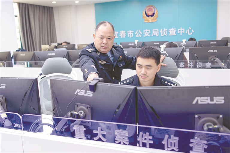 10月30日9时,记者走进宜春市公安局侦查中心时,高忠和正在电脑前忙碌。在他的工位上,电脑显示着密密麻麻的信息表格与错综复杂的关系图谱,桌上整齐叠放着几份案件研判报告。