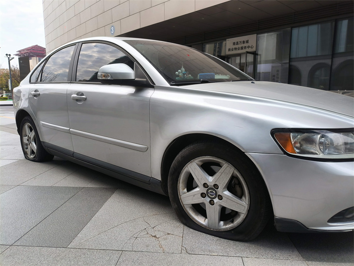 12月18日,南昌万象城商场与万悦公馆、万象城置地中心双塔楼之间的人行广场上,一辆银色轿车以一种尴尬的姿态停在禁停区域:车身冲上了铺设石砖的台阶,右侧前后两个轮胎均瘪了下去,车头保险杠下方还有磨损痕迹。自12月15日19时30分许事故发生,这辆车因责任划分意见不一致,已在此处“搁浅”了数日。