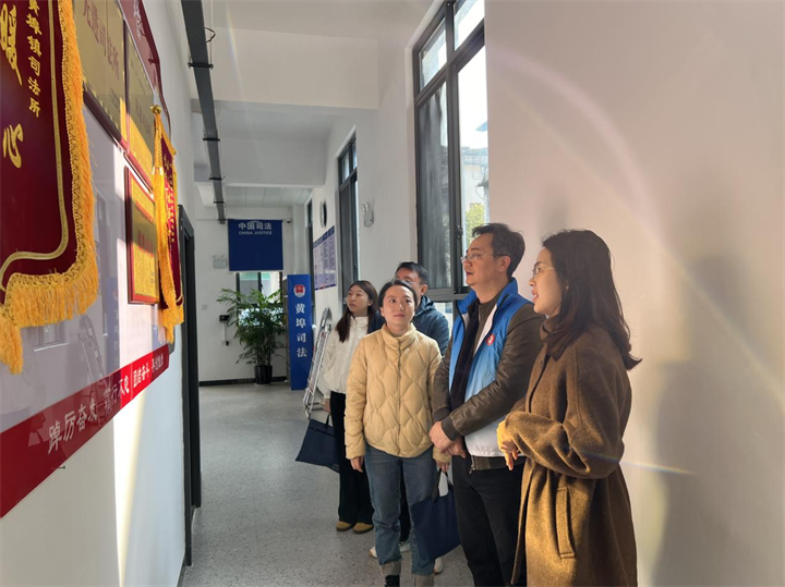 次日,毛小泉导师走进县司法局,通过实地参观、座谈交流等方式,全面了解上犹县司法行政工作的创新举措与亮点成效。随后,毛小泉导师前往黄埠司法所,在工作人员的引导下,他实地查看了司法所的服务大厅、调解室、法治宣传角等功能区域。在黄埠镇龙头村,毛小泉重点参观了法治文化阵地与祠堂议事厅,他仔细查看了法治宣传栏、文化长廊等设施,详细了解“祠堂议事”机制的运行流程、议事范围以及在化解矛盾纠纷、推动村务决策、凝聚乡村合力等方面的实际效果。当得知龙头村通过“祠堂议事”成功调解多起陈年纠纷、推动林地流转等项目落地,助力村集体经济增收,获评“省级民主法治示范村”时,毛小泉导师表示,“祠堂议事将传统民俗与现代法治治理相结合,既保留了乡土温情,又彰显了法治精神,是基层治理创新的生动实践,值得深入挖掘和宣传推广”。