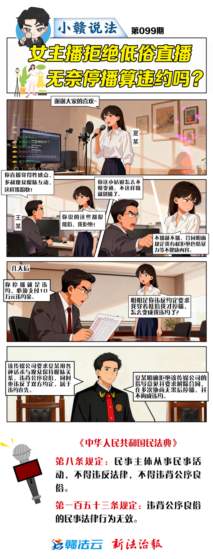 女主播拒绝低俗直播,无奈停播算违约吗?