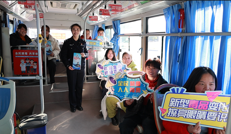 踏上公交车,便能感受到浓厚的禁毒氛围:车内扶手、座椅旁的宣传牌印着“珍爱生命 拒绝毒品”等标语,车身及车内展板更图文并茂地拆解了传统毒品与新型毒品的伪装套路与危害,让车厢变身移动禁毒科普馆。“禁毒专线”首发当天,还有民警在公交车上与乘客手持禁毒宣传手牌互动,现场讲解禁毒知识。(夏丹 实习生张嘉怡 首席记者龚辰欣)