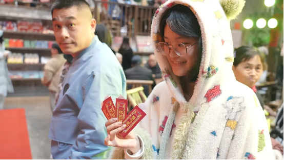“寻福”环节成为传播福彩公益宗旨的点睛之笔。活动方在茶馆梁柱、茶席等角落隐藏了特制“福签”,每枚签文都巧妙融合南昌方言与福彩理念,其中“扶老、助残、救孤、济困”四枚核心福签,更是精准传递了福利彩票的发行初心。市民们化身“寻福人”,在探索中品读福彩故事,在集齐福签的过程中深刻理解公益福彩的使命。现场一位市民拿着集齐的福签兑换礼品时表示:“原本只是来感受年味,没想到还能通过寻福了解福彩的公益宗旨,知道每一份福彩事业都在助力困难群体,感觉特别有意义。”