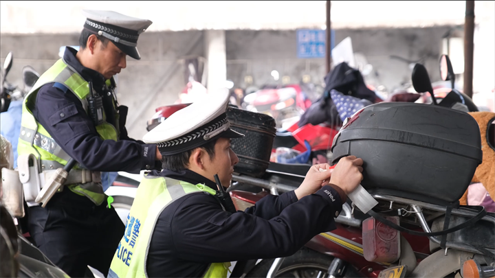 在执法层面,一种有温度的方式正在推行。记者在现场看到,一辆二轮车的车身上喷着交通安全提示语。据介绍,这是“一次提醒、二次警示、三次处罚”的三步法的体现:第一次轻微违法不处罚,喷标语提醒;第二次记录警示,主动曝光违法行为免于处罚;第三次才处罚。这种群众听得懂、能接受的方式,把交通违法者转化为文明出行的自觉实践者。