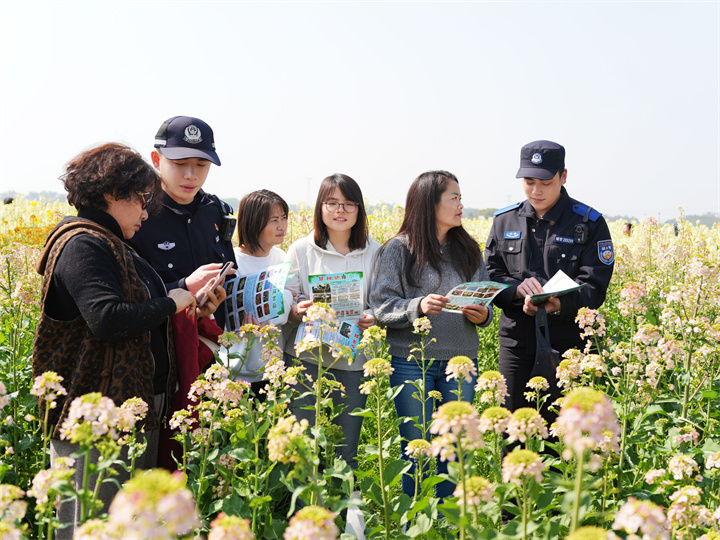 民警在花海开展安全宣讲