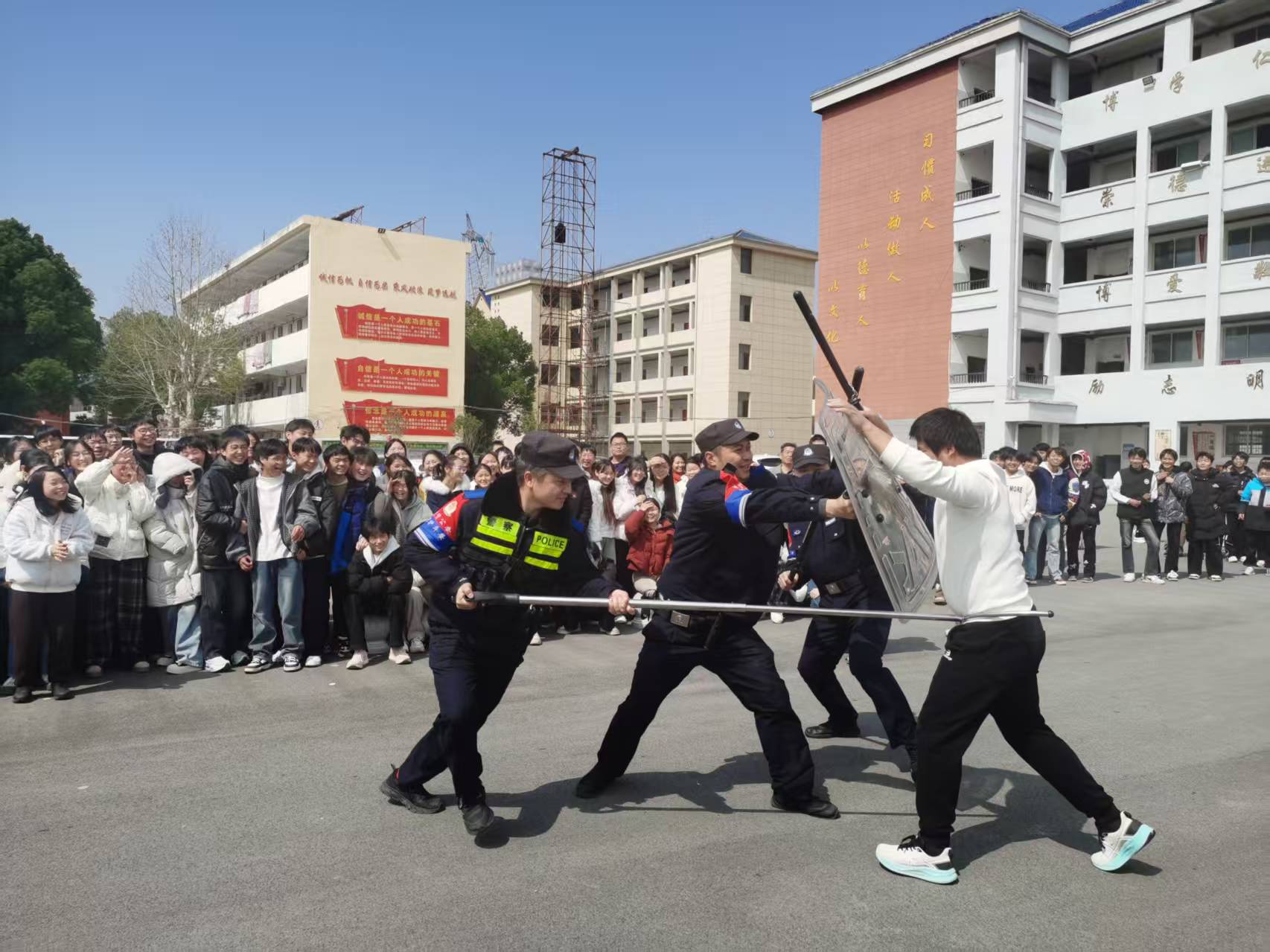 演练现场,民警围绕校园突发事件应急处置,向保安员和教职工详细讲解“最小应急单元”分工与实战技巧,并组织模拟实战演练,确保大家相互配合、协同作战处置突发事件。通过培训,有效增强了校园安保人员的安全防范意识和应急处置能力,为平安校园建设提供了强有力的支撑和保障。