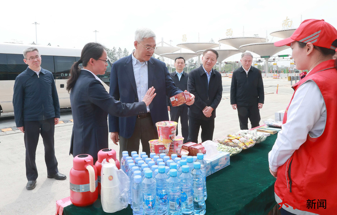 在枫生高速公路昌西南收费站,工作人员积极开展志愿服务,为过往司乘人员提供饮用水、零食、应急药物等服务,尹弘给予肯定,要求完善服务驿站功能,以暖心服务创造更加安全通畅的通行环境。在高速交警执法站,尹弘看望一线执勤交警,观摩无人机巡航和巡逻车装备,仔细了解高速公路交通安全管理工作情况,希望大家坚守岗位、忠诚履职,加强日常管理,强化科技赋能,提高重点路段管控率和见警率,高效做好道路交通管理各项工作,全力保障群众安全顺畅出行。