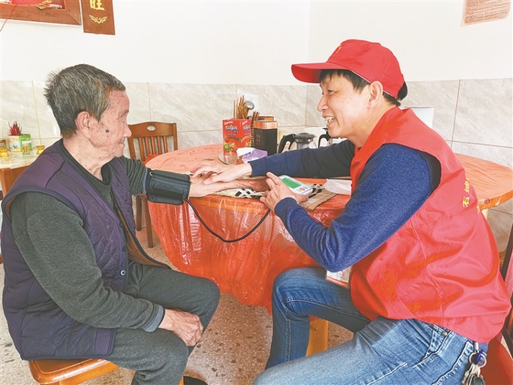 陈必相(右)帮老人量血压